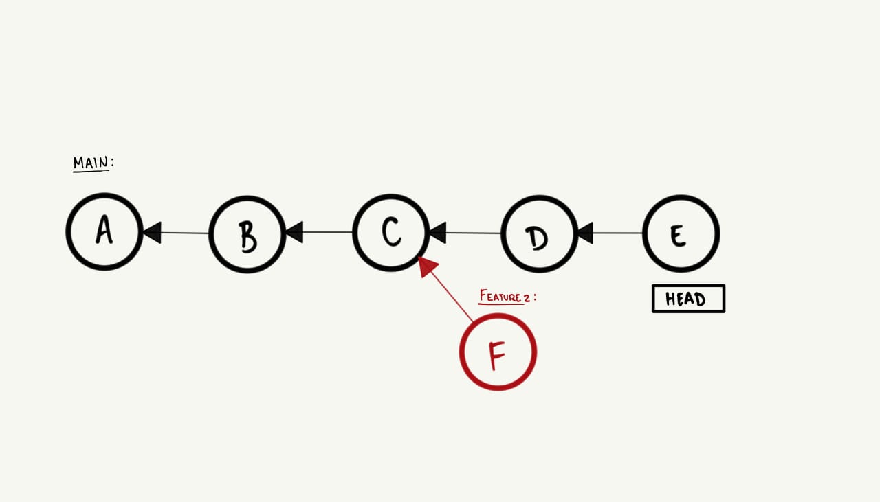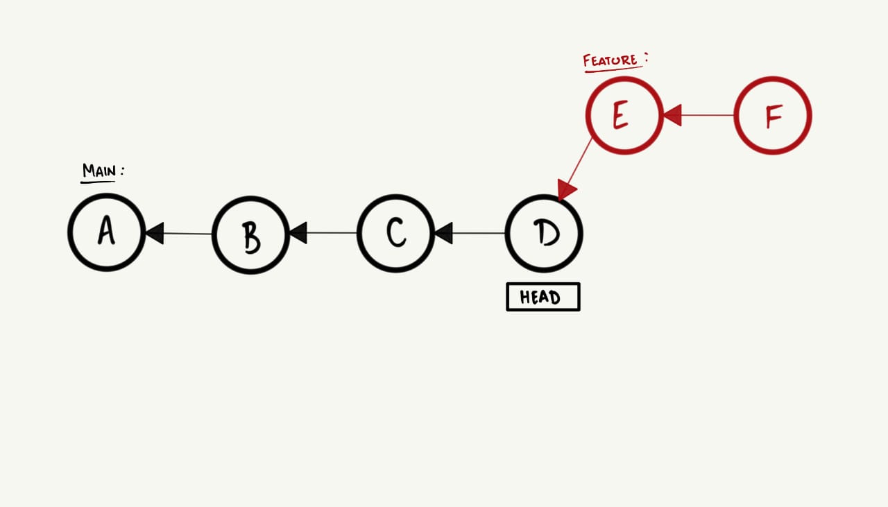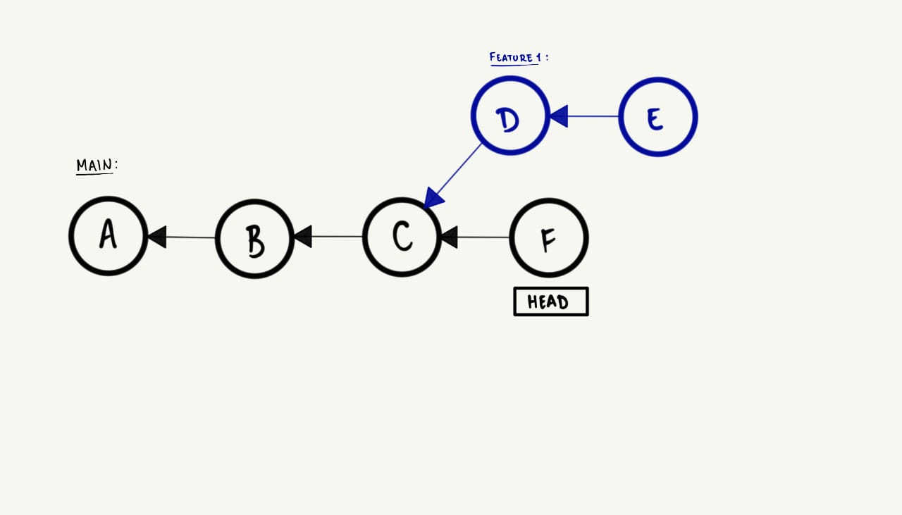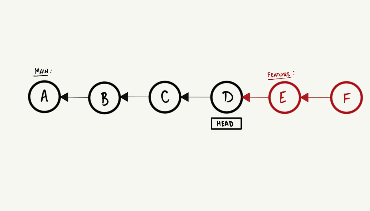 HEAD para o commit mais recente da feature. Visualmente, isso ocorre da seguinte maneira: