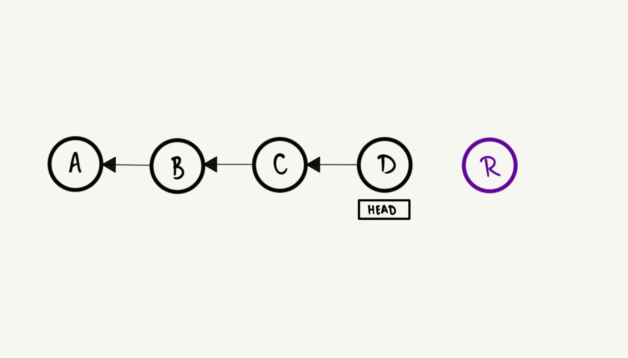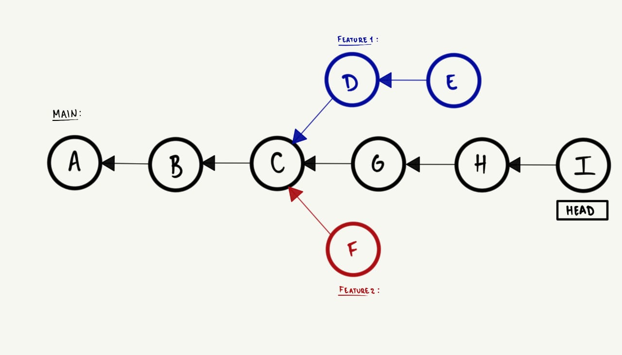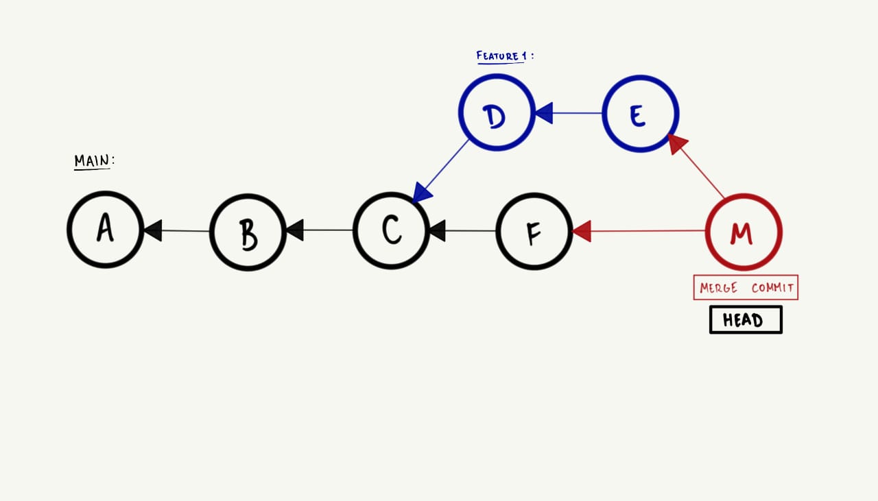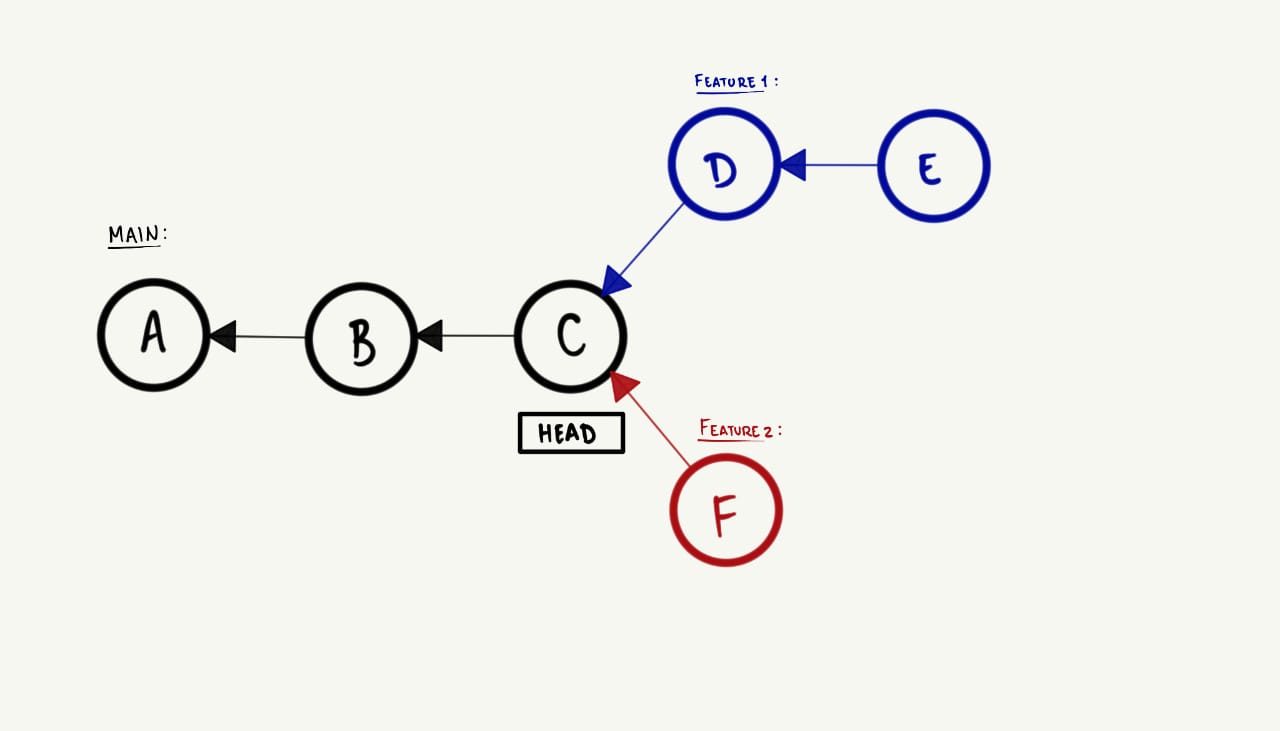 HEAD para o commit mais recente da feature. Visualmente, isso ocorre da seguinte maneira:
